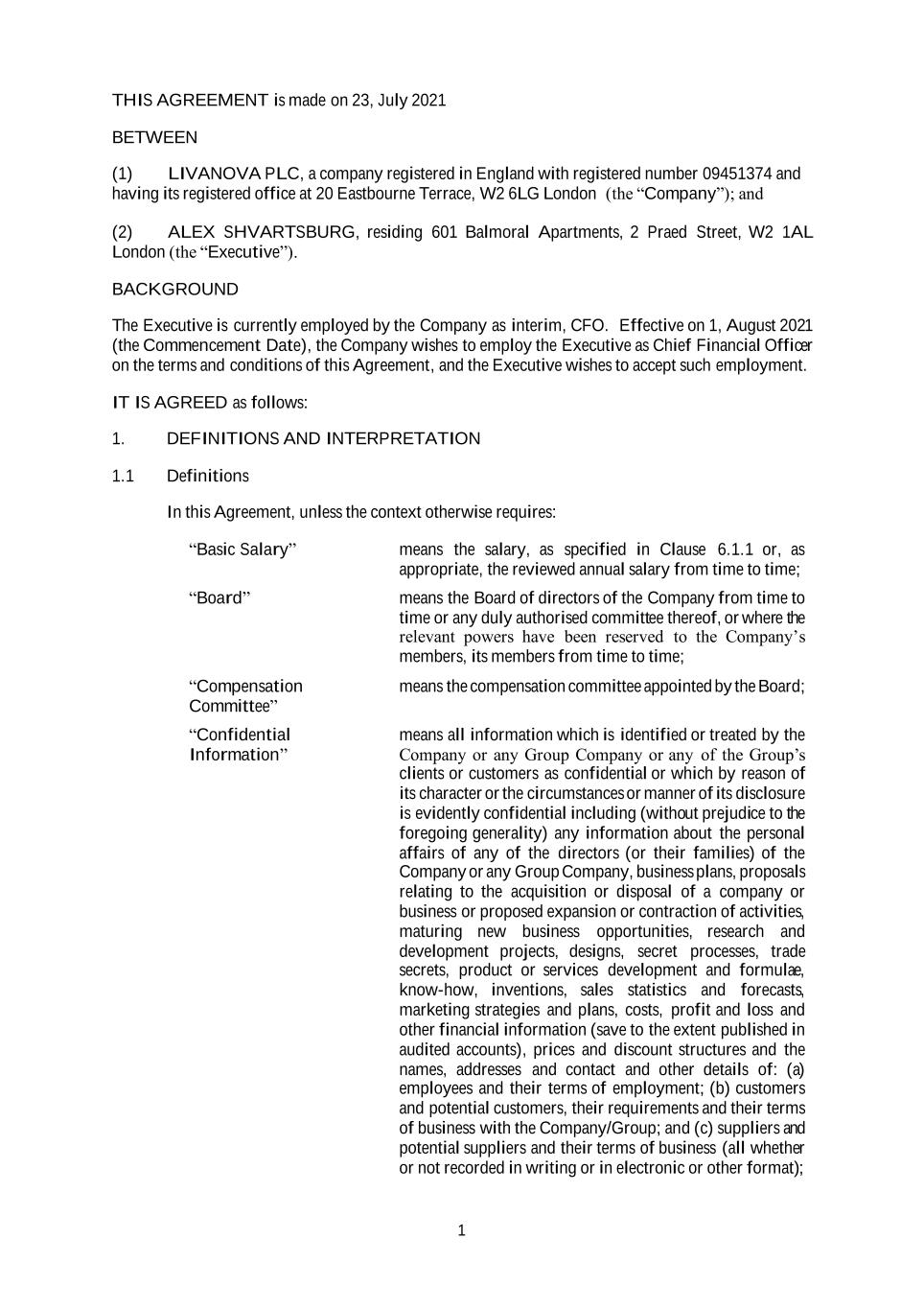 | Service Agreement, effective August 1, 2021 between the Company and Alex Shvartsburg |