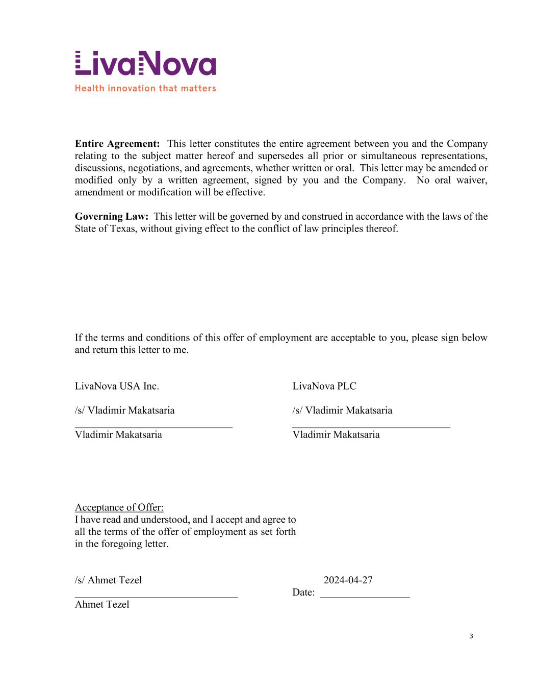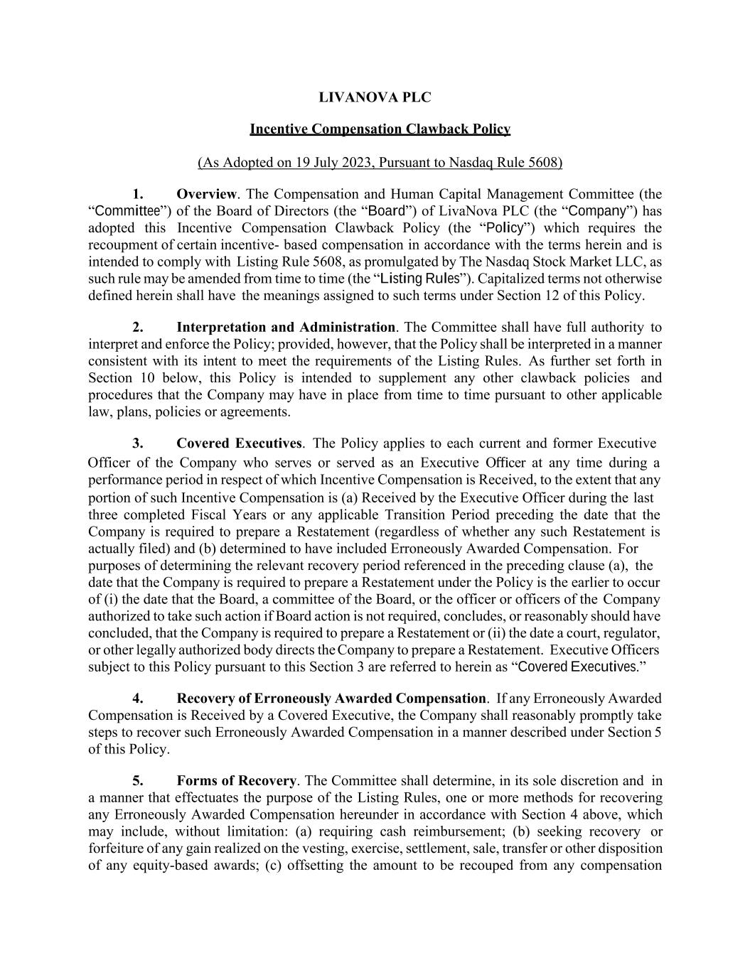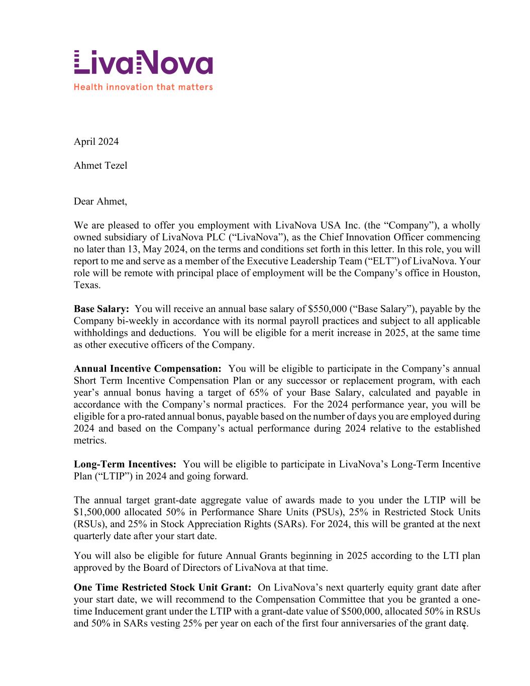 | A&R 2022 Plan Amendment | | Amendment No. 1 to the Amended and Restated LivaNova PLC 2022 Incentive Award Plan |