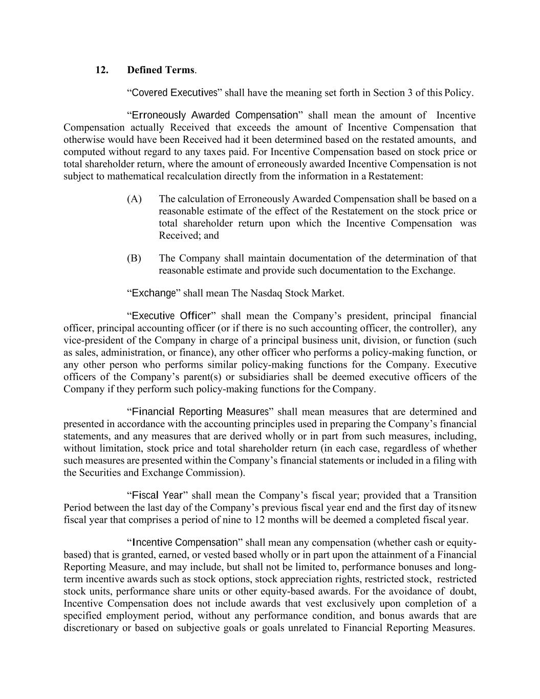 | CFO | | Chief Financial Officer |