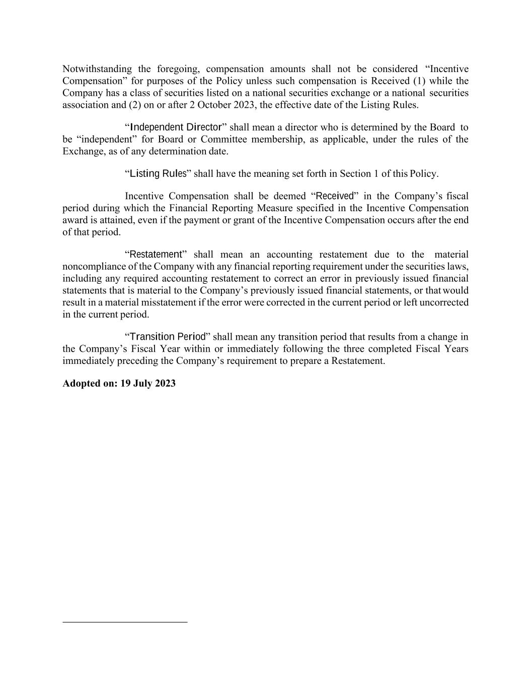 | CODM | | Chief Operating Decision Maker |