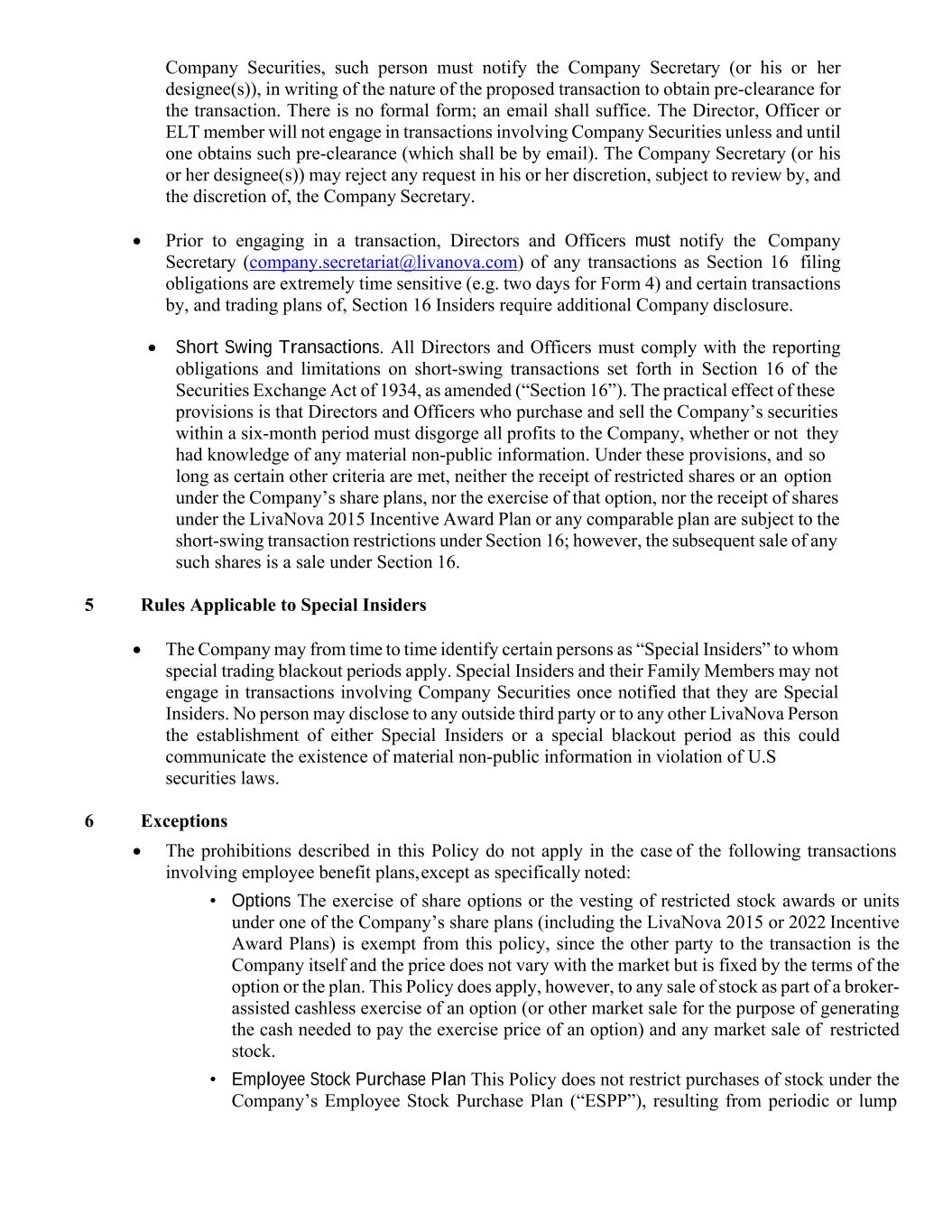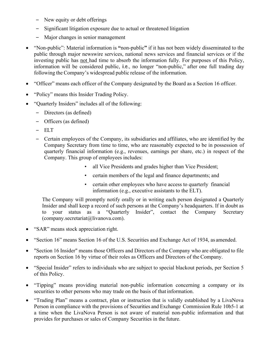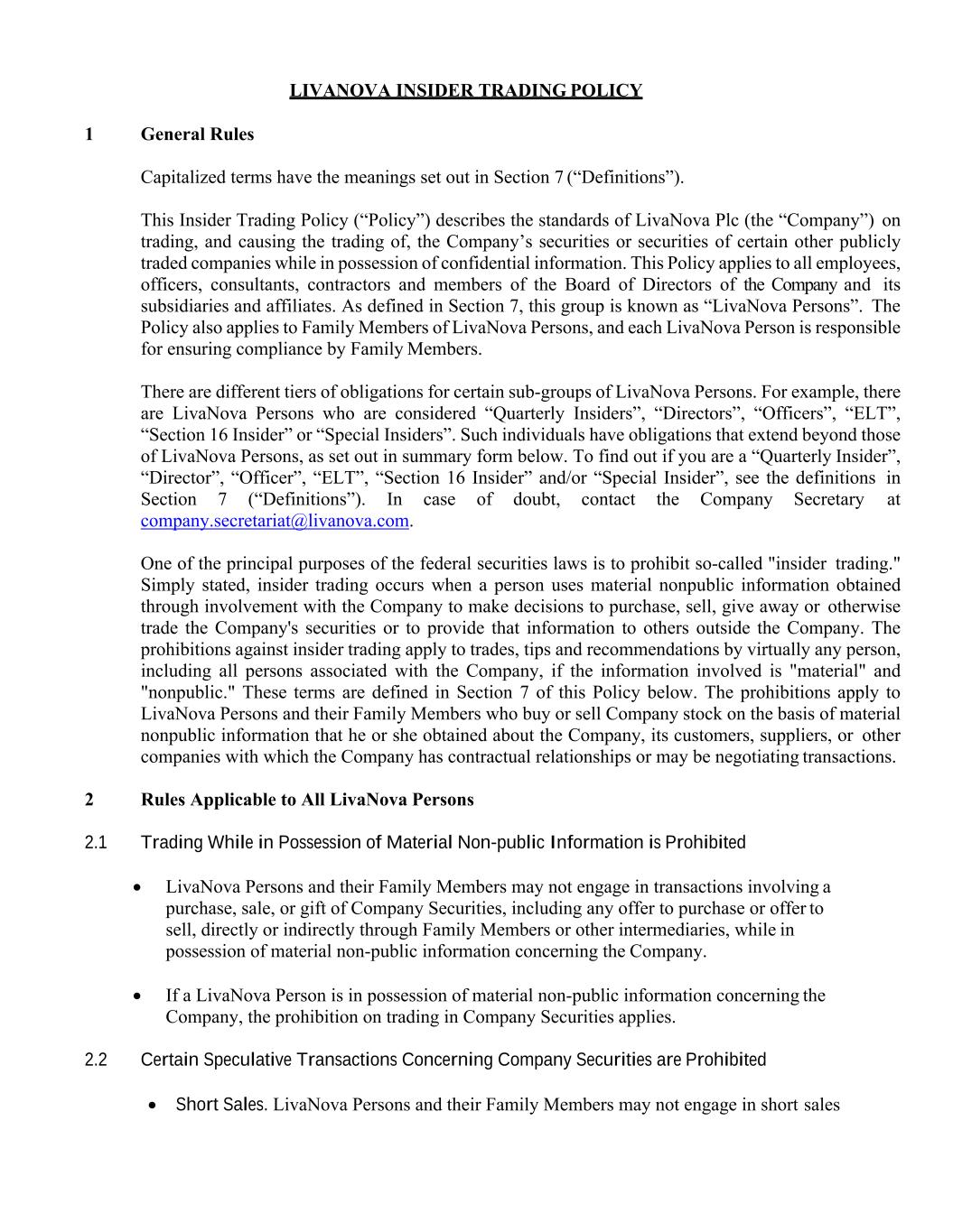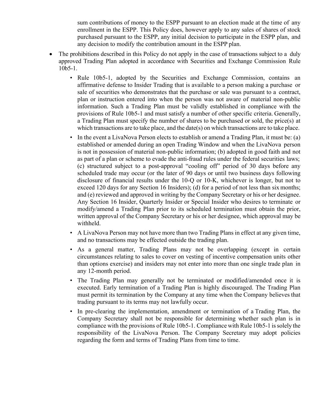 | Code of Conduct | | LivaNova PLC’s Code of Ethics and Business Conduct |