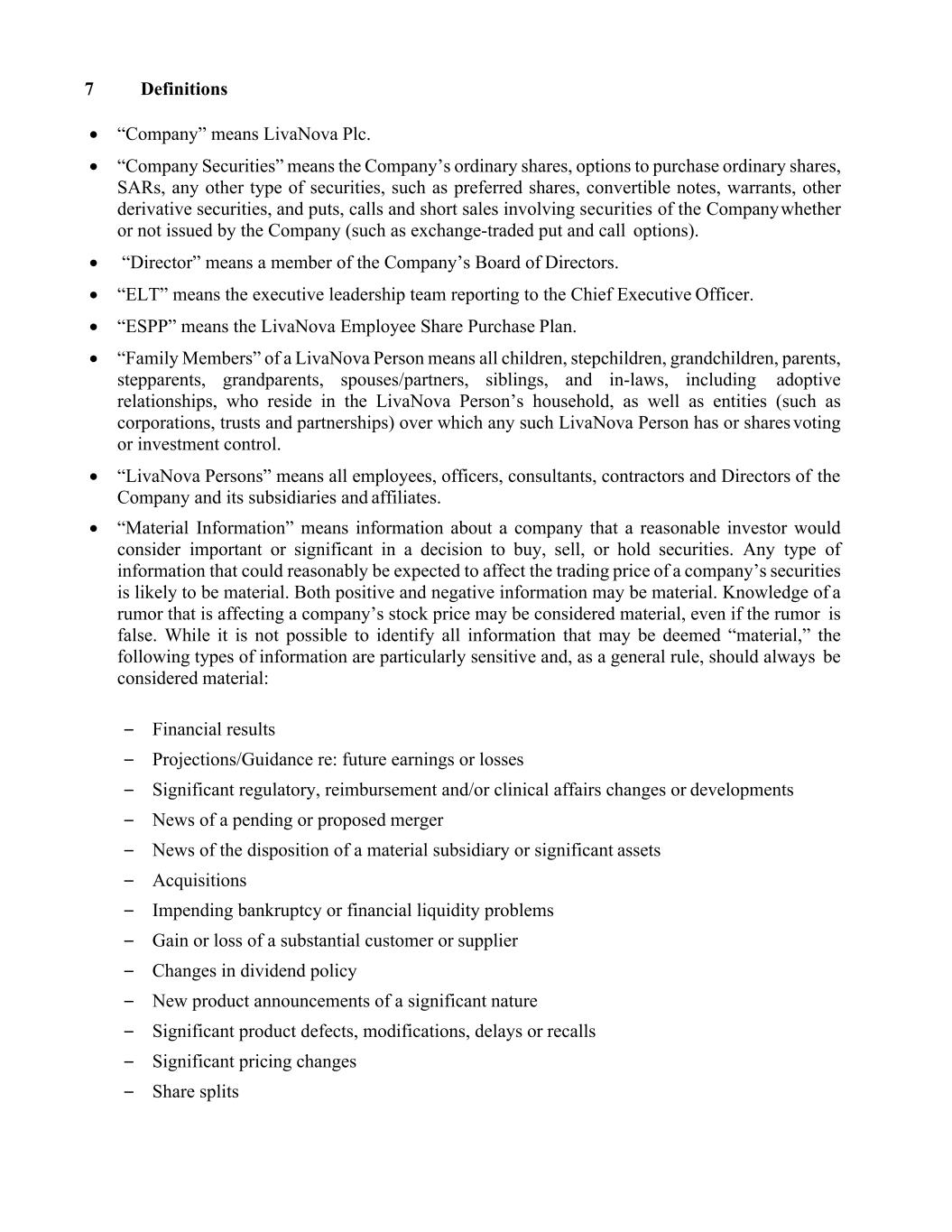 | 2025 Notes | | $287.5 million aggregate principal amount 3.00% unsecured cash exchangeable senior notes due 2025 by private placement to qualified institutional buyers pursuant to Rule 144A under the Securities Act, issued by LivaNova USA on June 17, 2020 |