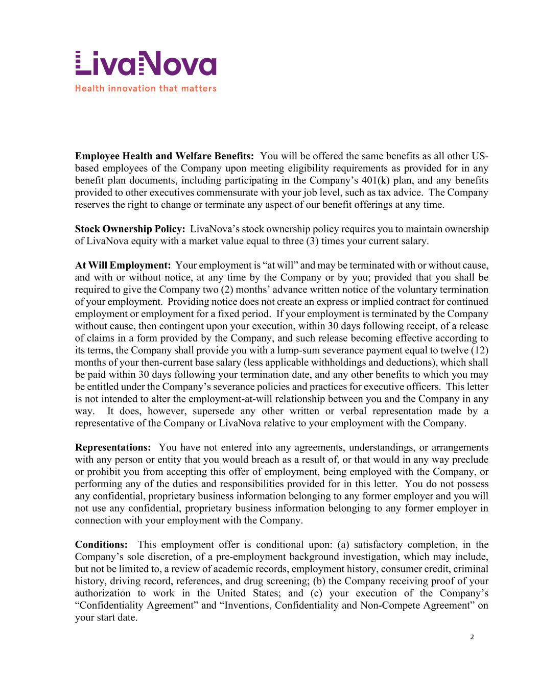 | 2015 Plan Amendment | | Amendment No. 2 to the LivaNova PLC 2015 Incentive Award Plan |